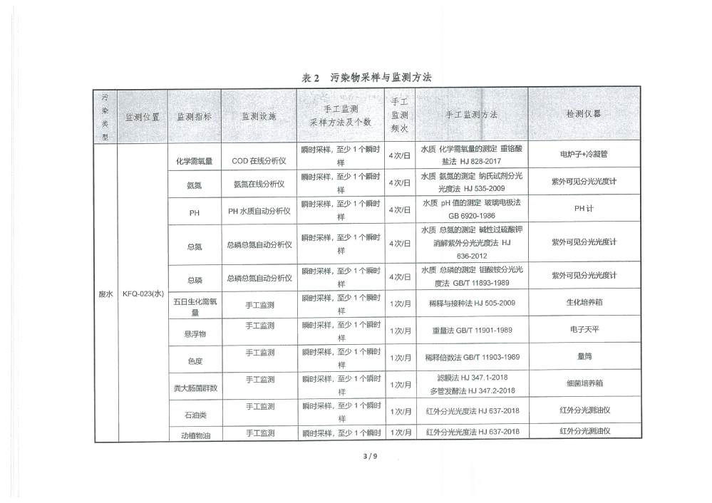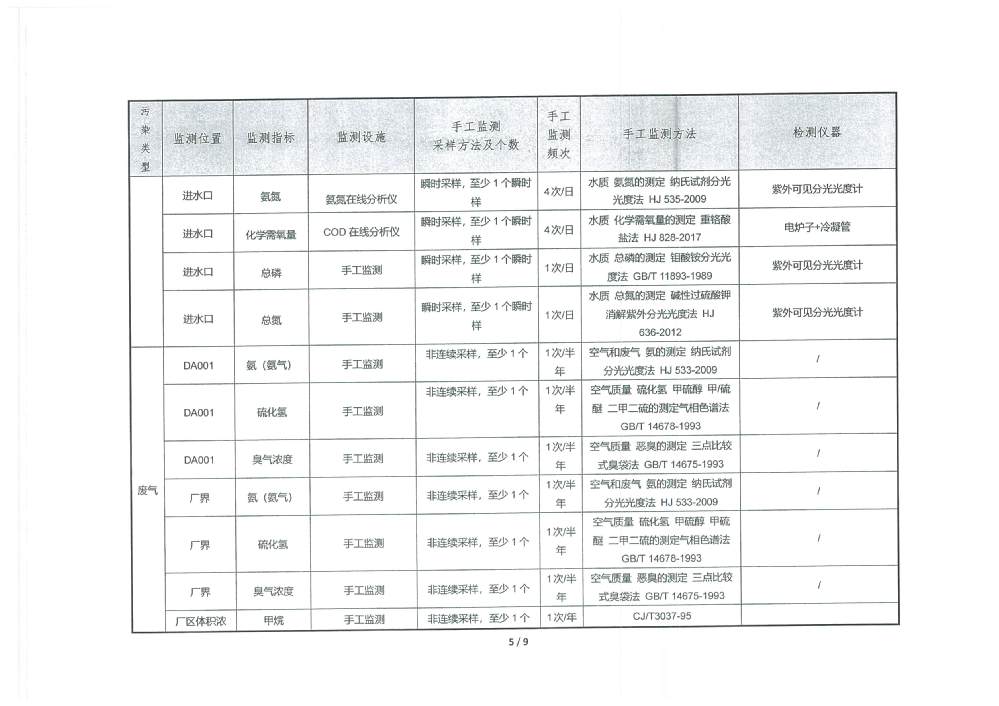 PH 6.70 6-9 92 100 COD 20.91 30 92 100 BOD5 2.29 6 92 100 SS 3.11 5 92 100 TP 0.19 0.3 92 100 TN 6.36 10 92 100 NH4-N 0.31 1.5(3.0) 92 100 色度 2.00 15 92 100 糞大腸菌群 17.02 1000 92 100 石油類 0.177 0.5 3 100 動植物油 0.247 1.0 3 100 陰離子表面活性劑 0.245 0.3 3 100 六價鉻 0.002 0.05 1 100 總鉻 0.015 0.1 1 100 總鎘 0.00034 0.005 1 100 總砷 0.0021 0.05 1 100 總鉛 0.0129 0.05 1 100 總汞 0.00031 0.001 1 100 出水達標率100% 2025年2季度 排放量(噸) 1 化學需氧量 2 氨氮(NH3-N) 2.50 3 總氮(以N計) 51.38 4 總磷(以P計) 1.53 3.防治污染設施的建設和運行情況